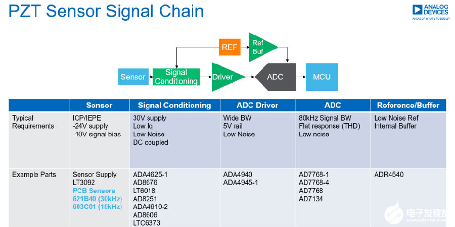 當然,如果想繼續(xù)選用PZT傳感器,ADI也可以提供后續(xù)調(diào)理和數(shù)據(jù)采樣方案: