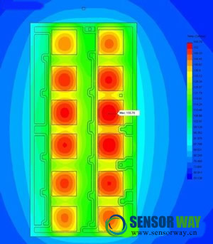 圖2:功率模塊內(nèi)有關(guān)不同溫度傳感器位置的案例研究;模型和溫度模擬