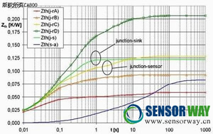 圖3:結(jié)( j )到不同位置傳感器(rX )和散熱器的熱阻抗