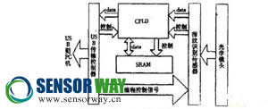 因此,利用CMOS數(shù)字圖像傳感器與USB接口數(shù)據(jù)傳輸來(lái)實(shí)現(xiàn)的指紋識(shí)別儀具有結(jié)構(gòu)簡(jiǎn)單,體積小,便攜化等優(yōu)點(diǎn),F(xiàn)將介紹利用OMniVision公司的CMOS彩色數(shù)字圖像傳感器OV762M和cypress公司的EZ—USB AN2131QC USB控制傳輸芯片(內(nèi)部集成了增強(qiáng)形51內(nèi)核)來(lái)實(shí)現(xiàn)指紋信息的采集和USB傳輸,同時(shí)由于指紋傳感器輸出數(shù)據(jù)的速率(27MB/s)與USB控制器(AN2131QC)數(shù)據(jù)傳輸速率(12Mb/s)的不匹配,故系統(tǒng)采用了SRAM和CPLD構(gòu)成中間高速緩沖區(qū)。