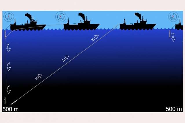 最后,整個儀器都裝在一個鋁管中,設(shè)計成可通過一條長線連接到船尾的絞盤上。隨著船舶的移動,團(tuán)隊可以將儀器掉落到舷外,并使用絞車以即使儀器移開時儀器也能直接下降的速度來支付管線費用。大約兩分鐘后,一旦到達(dá)約500米的深度,團(tuán)隊便搖動絞盤將儀器拉回原位,以使儀器在12分鐘內(nèi)趕上船。然后機(jī)組人員可以再次放下儀器,這次離他們的最后一個放下點一定距離。