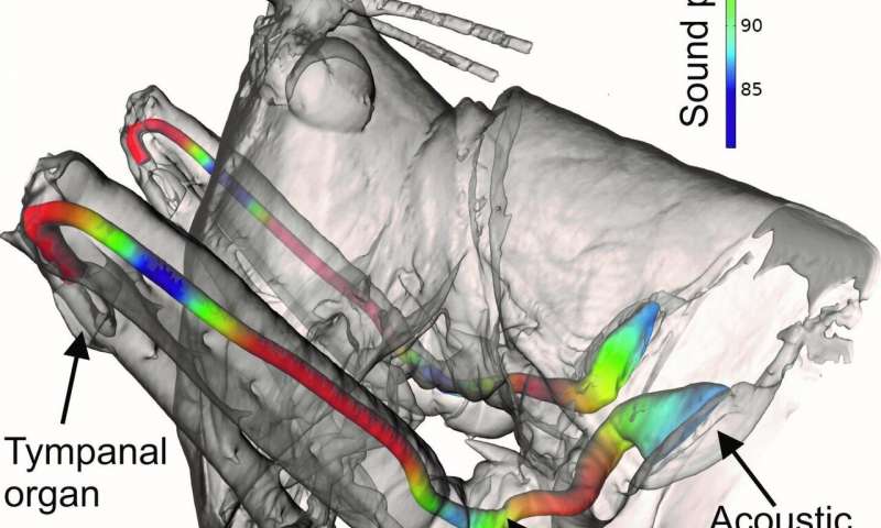 一個由感官生物學(xué)家和數(shù)學(xué)家組成的國際團(tuán)隊發(fā)現(xiàn),昆蟲的喇叭形外耳(稱為氣管導(dǎo)管)通過放大和轉(zhuǎn)換壓力波來捕獲與哺乳動物耳道相同的聲音,然后將其傳遞給鼓膜表面為動物提供定向聽覺。