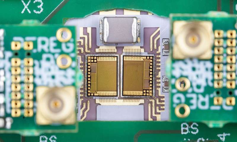 具有集成晶體管,柵極驅(qū)動(dòng)器,二極管以及用于狀態(tài)監(jiān)控的電流和溫度傳感器的GaN功率IC。圖片來(lái)源:Fraunhofer IAF
