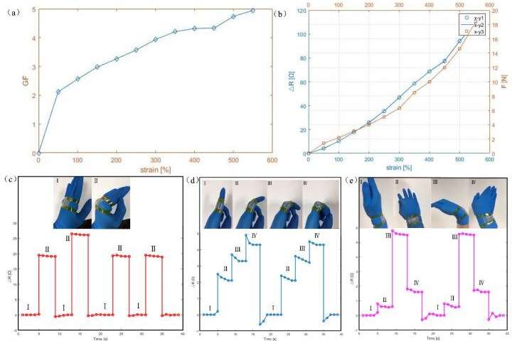 研究人員使用該傳感器進行關節(jié),手指和腕部運動的精確檢測,從而獲得了出色的性能。他們的結果表明該傳感器在柔性可穿戴電子設備中的巨大應用潛力。