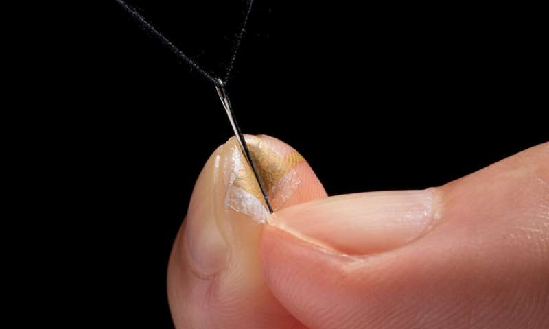 該傳感器比人的頭發(fā)細(xì)得多,并且不影響靈敏度。圖片來(lái)源:?2020 Someya等。