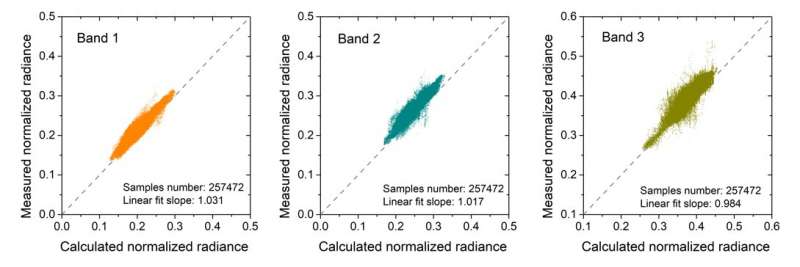 研究人員檢測了傳感器的在軌輻射靈敏度變化,并評估了它們的整體輻射檢測性能。他們還驗(yàn)證了交叉輻射校準(zhǔn)方案,將POSP的高精度板載校準(zhǔn)系數(shù)轉(zhuǎn)移到DPC的寬視場。