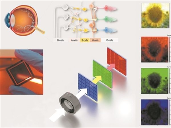 美國賓夕法尼亞州立大學(xué)科學(xué)家從大自然中汲取靈感,開發(fā)出一種新設(shè)備,可通過模仿人眼中的紅、綠、藍光感受器和神經(jīng)網(wǎng)絡(luò)來生成圖像。他們用模仿人類視錐細胞的窄帶鈣鈦礦光電探測器創(chuàng)建了一個新的傳感器陣列,并將其連接到模仿人類神經(jīng)網(wǎng)絡(luò)的神經(jīng)形態(tài)算法,以處理信息并生成高保真圖像。研究發(fā)表在最新一期《科學(xué)進展》上。