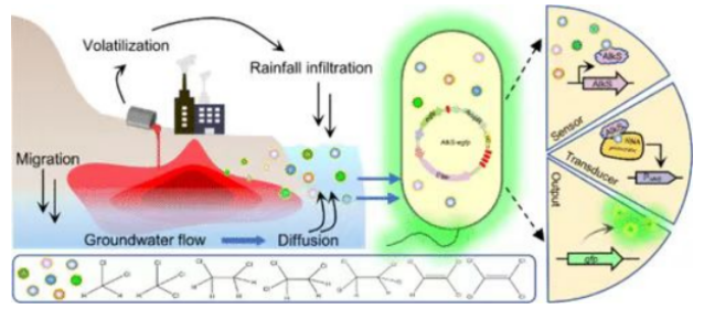 短鏈氯代烴(SCAHs)通常用作工業(yè)試劑和溶劑,由于其廣泛使用和意外泄漏而滲入水生環(huán)境,對(duì)生態(tài)系統(tǒng)和人類健康構(gòu)成嚴(yán)重威脅。全細(xì)胞生物傳感器已成為用于環(huán)境監(jiān)測(cè)和修復(fù)的經(jīng)濟(jì)、快速和實(shí)時(shí)的分析工具,但特異性識(shí)別污染物的轉(zhuǎn)錄因子的缺失往往阻礙了此類生物傳感器的應(yīng)用。基于此,安徽大學(xué)環(huán)境所徐升敏副教授以響應(yīng)長(zhǎng)鏈烷烴的轉(zhuǎn)錄因子AlkS為研究對(duì)象,利用半理性設(shè)計(jì)方法,結(jié)合正/負(fù)熒光激活細(xì)胞分選策略,開(kāi)發(fā)出一種特異性響應(yīng)SCAHs的生物傳感器。隨后,通過(guò)啟動(dòng)子定向進(jìn)化技術(shù),進(jìn)一步提高了該生物傳感器的性能。優(yōu)化后的生物傳感器的本底熒光泄漏減少了89%,靈敏度顯著提高,動(dòng)態(tài)響應(yīng)范圍更廣,誘導(dǎo)1小時(shí)后熒光輸出增加了150 倍。檢測(cè)限(LOD)達(dá)到0.03 ppm,實(shí)際水樣中SCAHs的平均回收率為95.87% 至101.20%。GC-MS驗(yàn)證顯示所開(kāi)發(fā)的生物傳感器的準(zhǔn)確度和精密度,證明其在實(shí)際環(huán)境樣品中檢測(cè) SCAHs 方面具有廣闊的應(yīng)用前景。