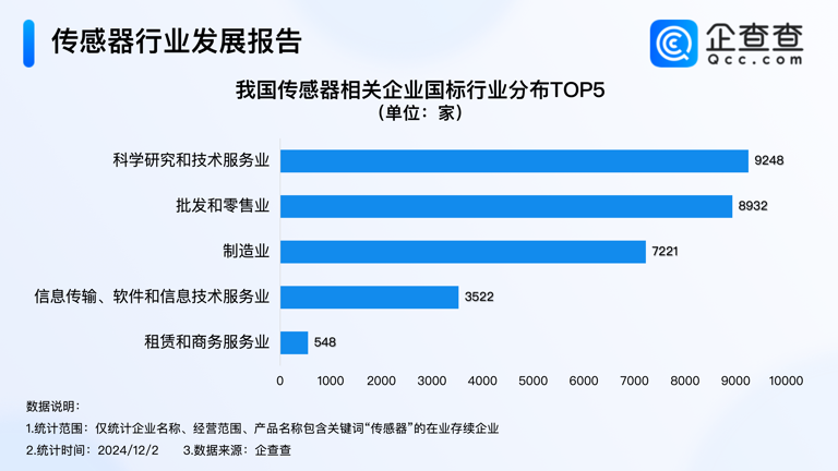 在行業(yè)分布方面,科學(xué)研究和技術(shù)服務(wù)業(yè)成為傳感器企業(yè)最為集中的領(lǐng)域,占比達到30.5%,共有9248家企業(yè)。緊隨其后的是批發(fā)和零售業(yè),占比29.5%,擁有8932家企業(yè)。制造業(yè)同樣占據(jù)重要地位,占比23.8%,共有7221家企業(yè)。