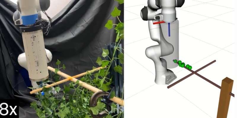 “農業(yè)場景中的操作之所以難度大,原因之一在于環(huán)境中存在大量遮擋物 —— 葉片隨處懸掛,這會屏蔽許多視覺輸入信息! 李夢洋解釋道。以果園為例,“果實本身可能被部分遮擋,機械臂要抵達果實所在位置的移動路徑也可能被嚴重遮擋!